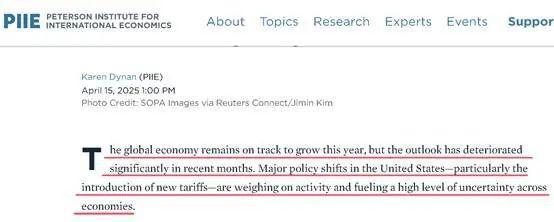 下图,分别是彼得森国际经济研究所和布鲁金斯学会发布的对2025年全球经济一季度的评估和未来展望的内容。